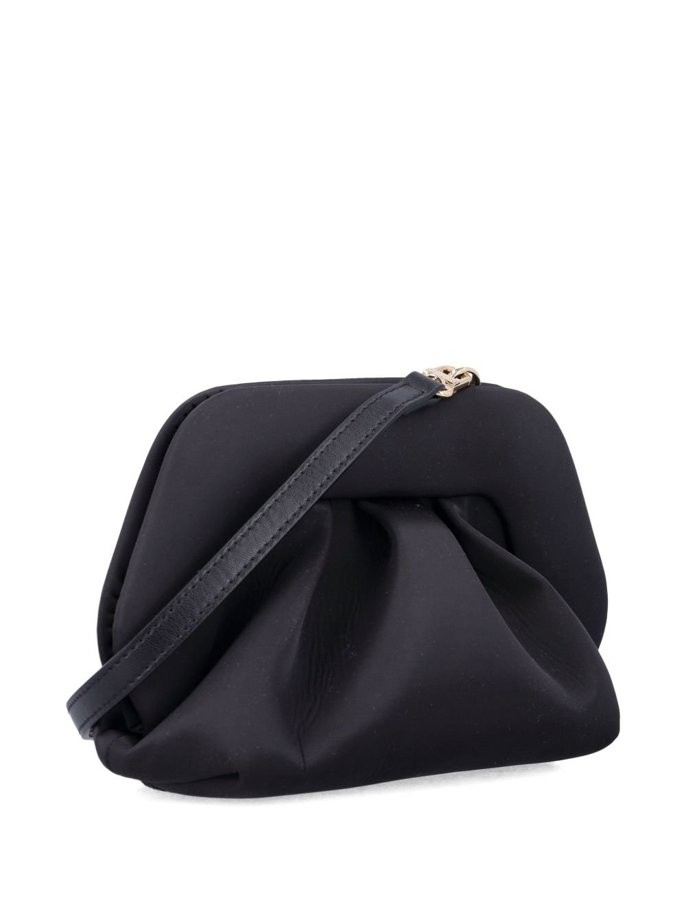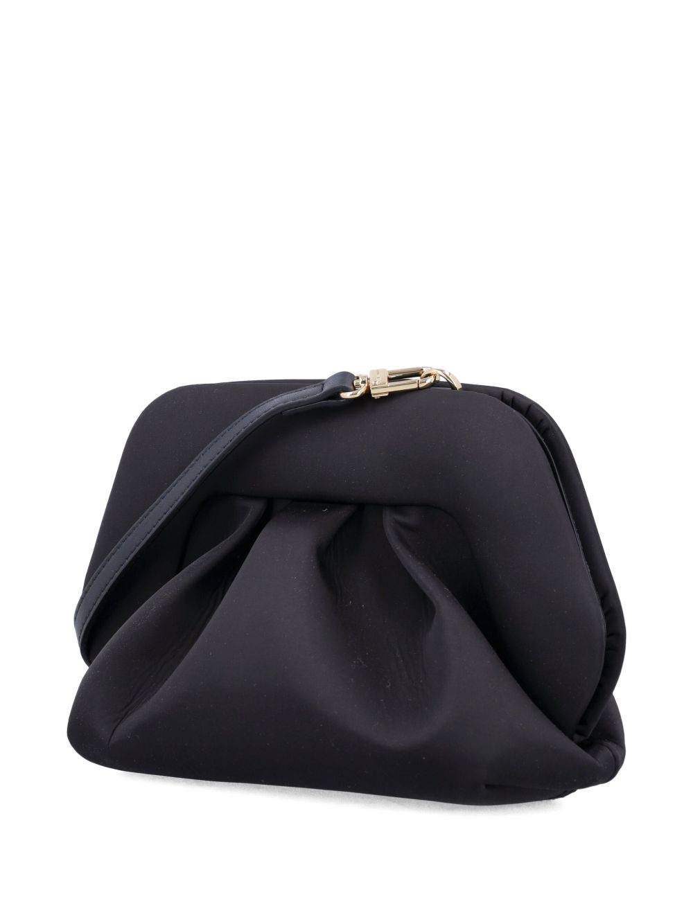 realizzata in tessuto vegano, design clutch, chiusura magnetica, tracolla removibile, interno realizzato in materiali 100% riciclati, larghezza 32 cm, altezza 18 cm, profondità 15 cm