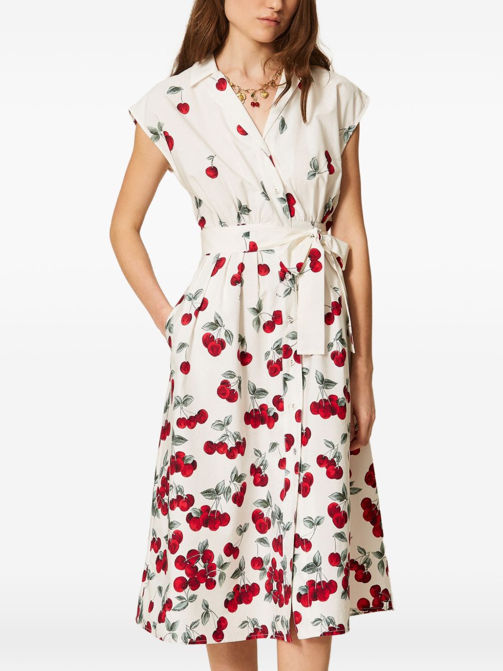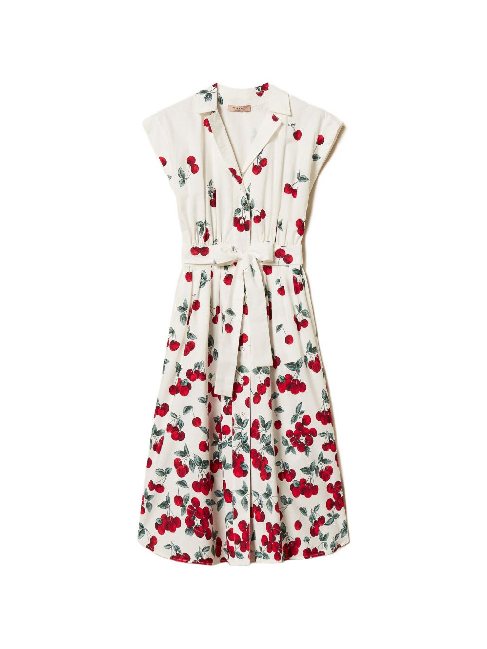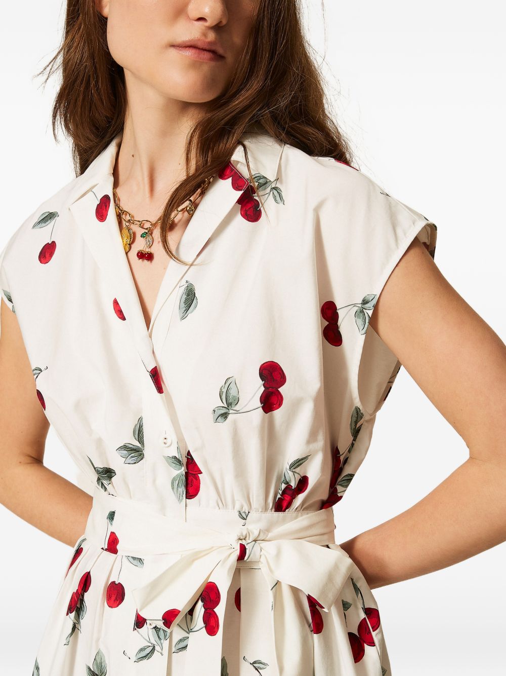 Realizzato in cotone, scollo a V, senza maniche, cintura con fiocco, stampa ciliegie all-over, 100% cotone