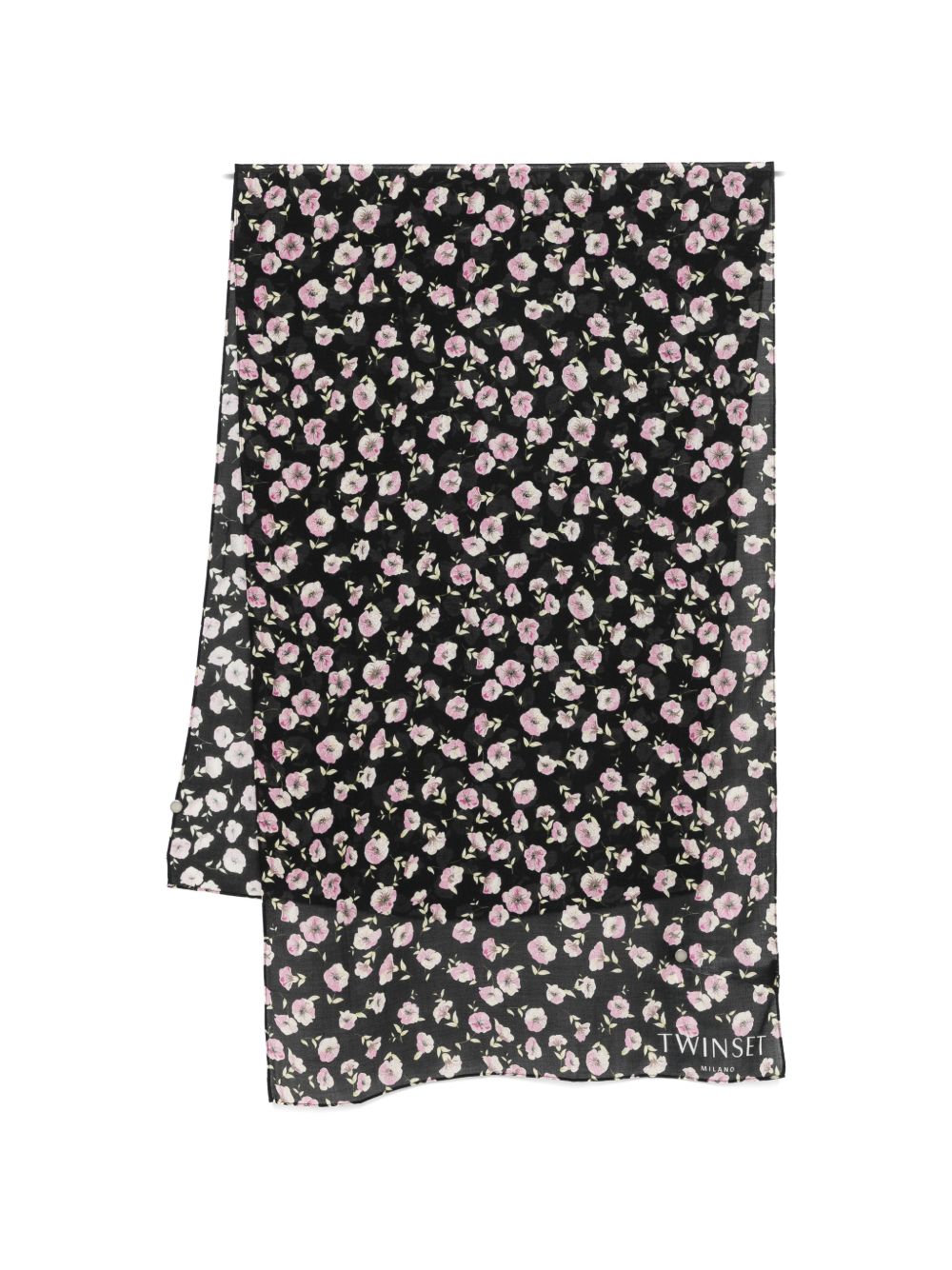 Foulard donna nero con motivo floreale