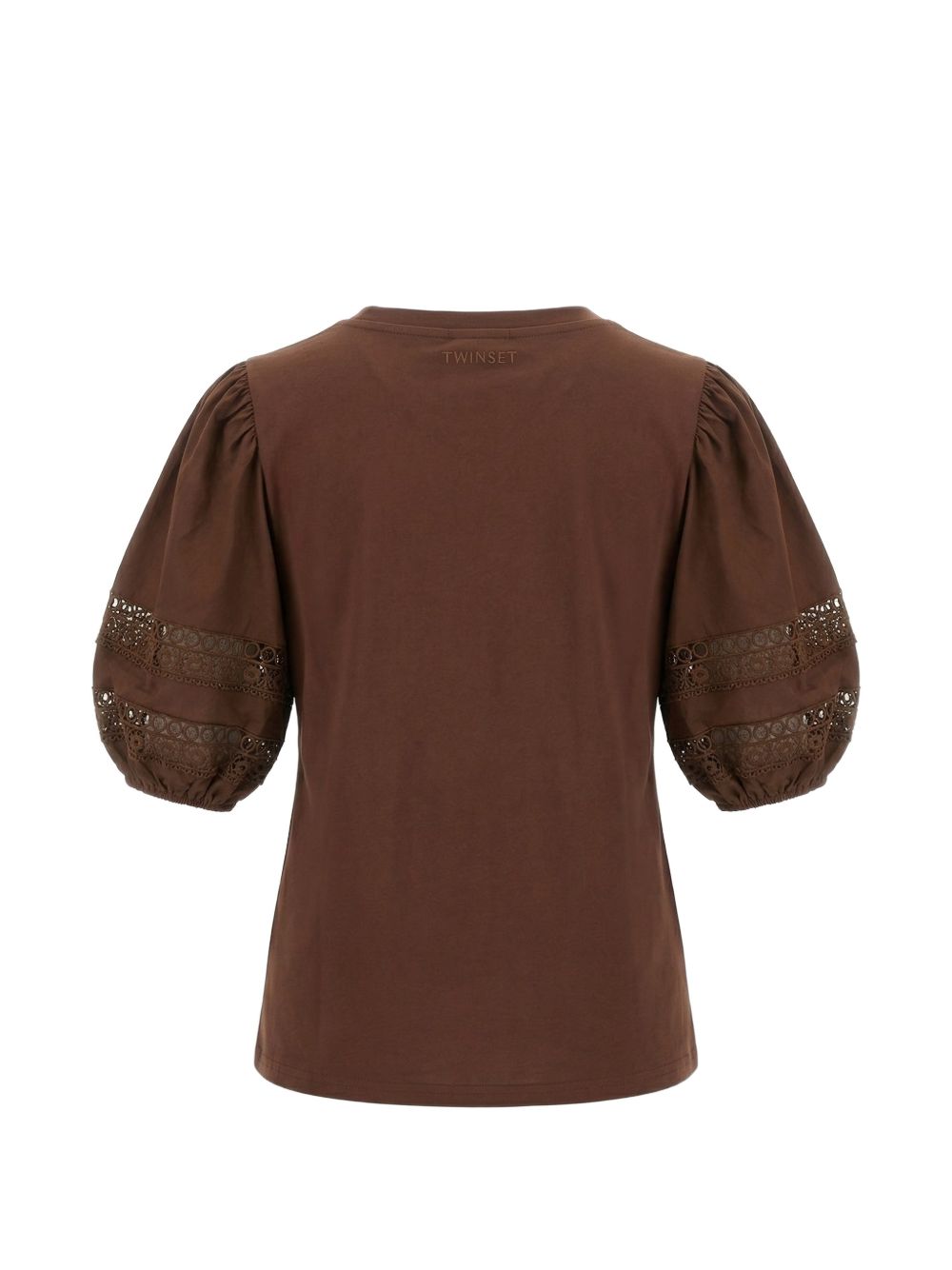 T-shirt donna marrone con dettagli in pizzo