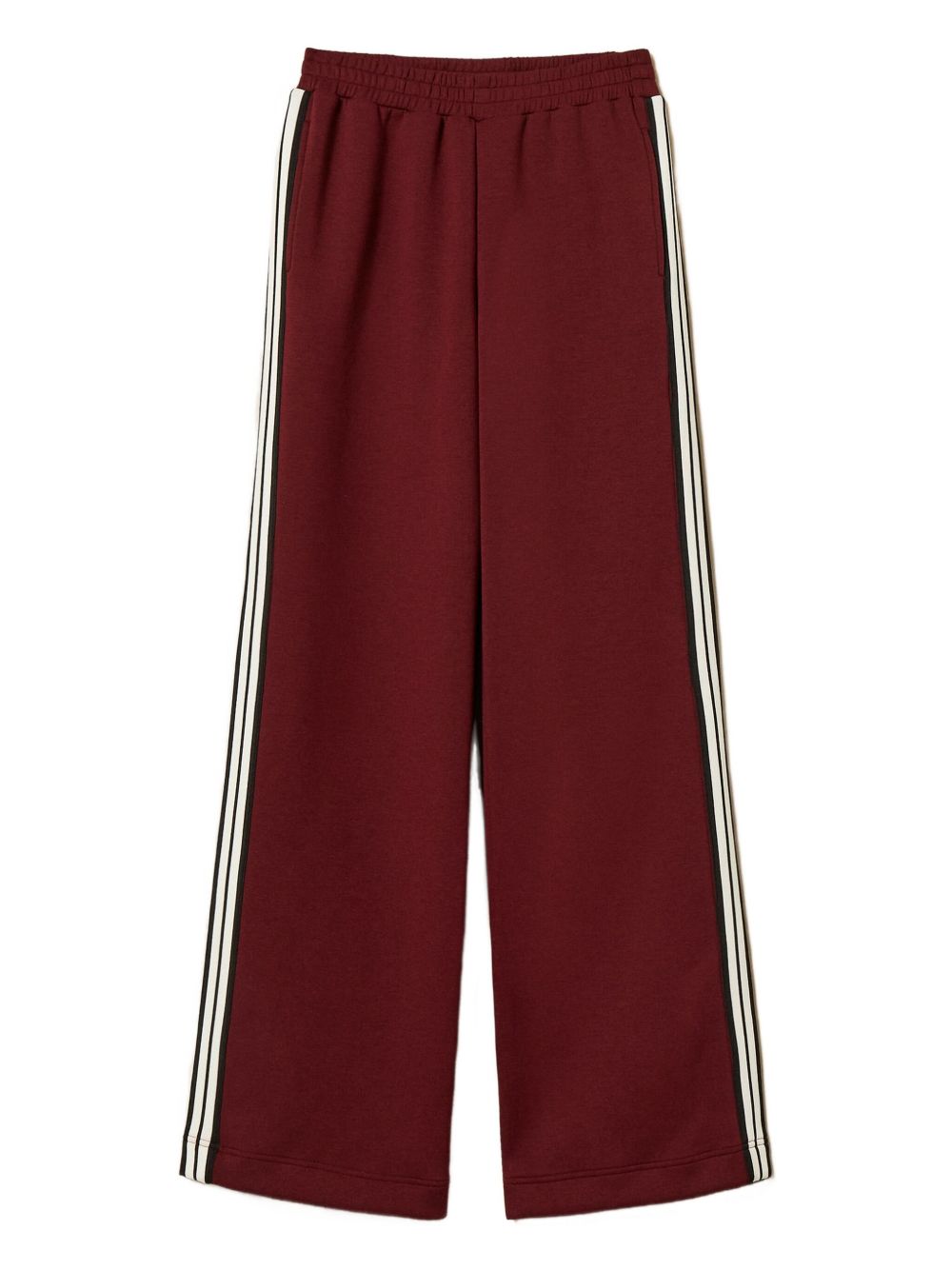 Realizzato in poliestere, vita elasticizzata, bande laterali rigate laterali, badge logato in metallo color oro dietro, 79% poliestere, 15% viscosa, 6% elastam
