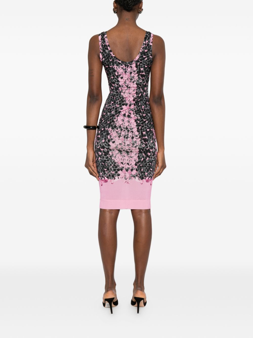 Realizzato in viscosa, stampa, senza manica, collo squadrato, vestibilità aderente, 90% viscosa, 10% elastam