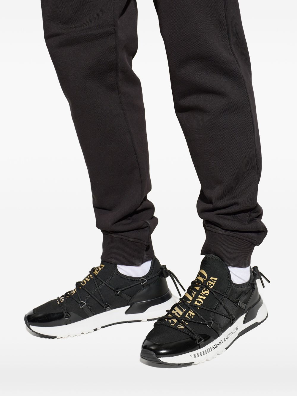 realizzata in tessuto, linguetta logata, chiusura frontale con lacci a coulisse, suola in gomma logata